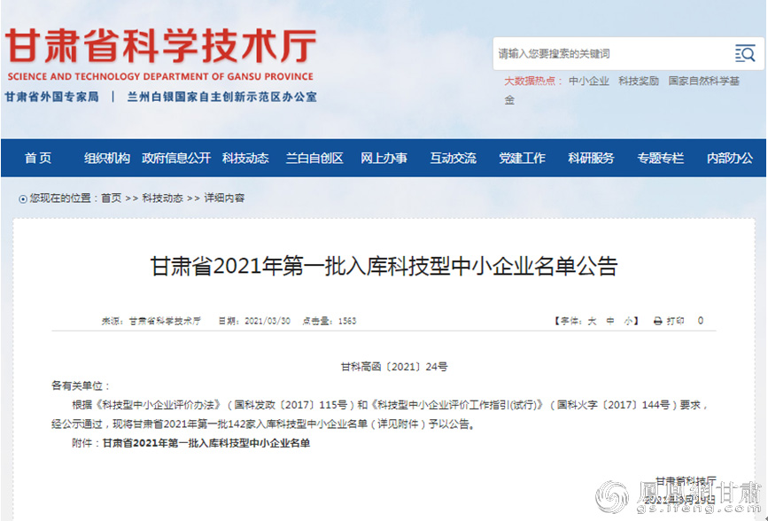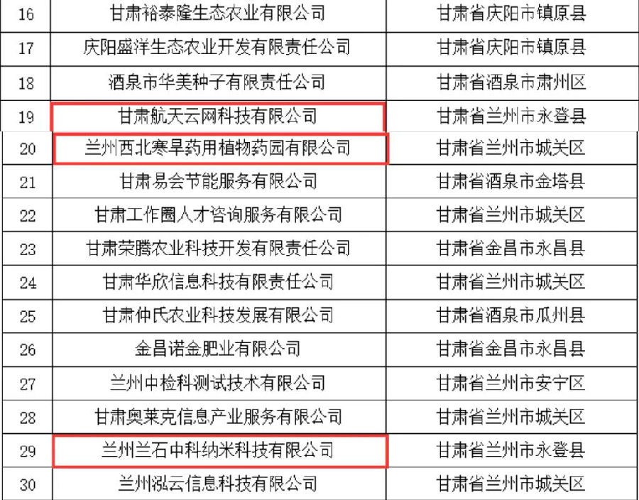 甘肃省2021年第一批科技型中小企业入库名单